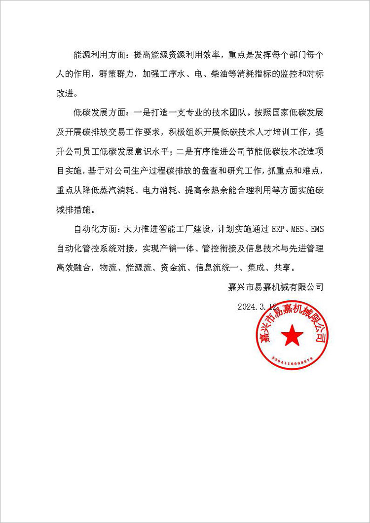 嘉興市易嘉機械有限公司2024年度綠色低碳發(fā)展年度報告