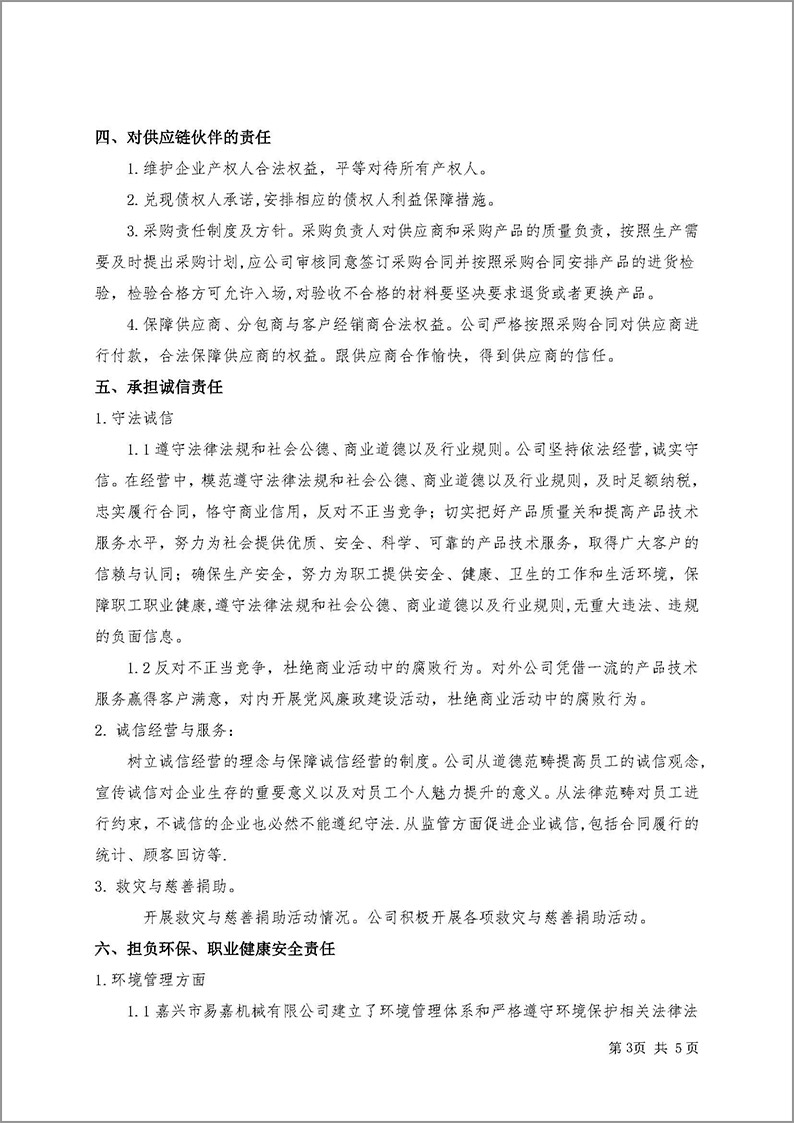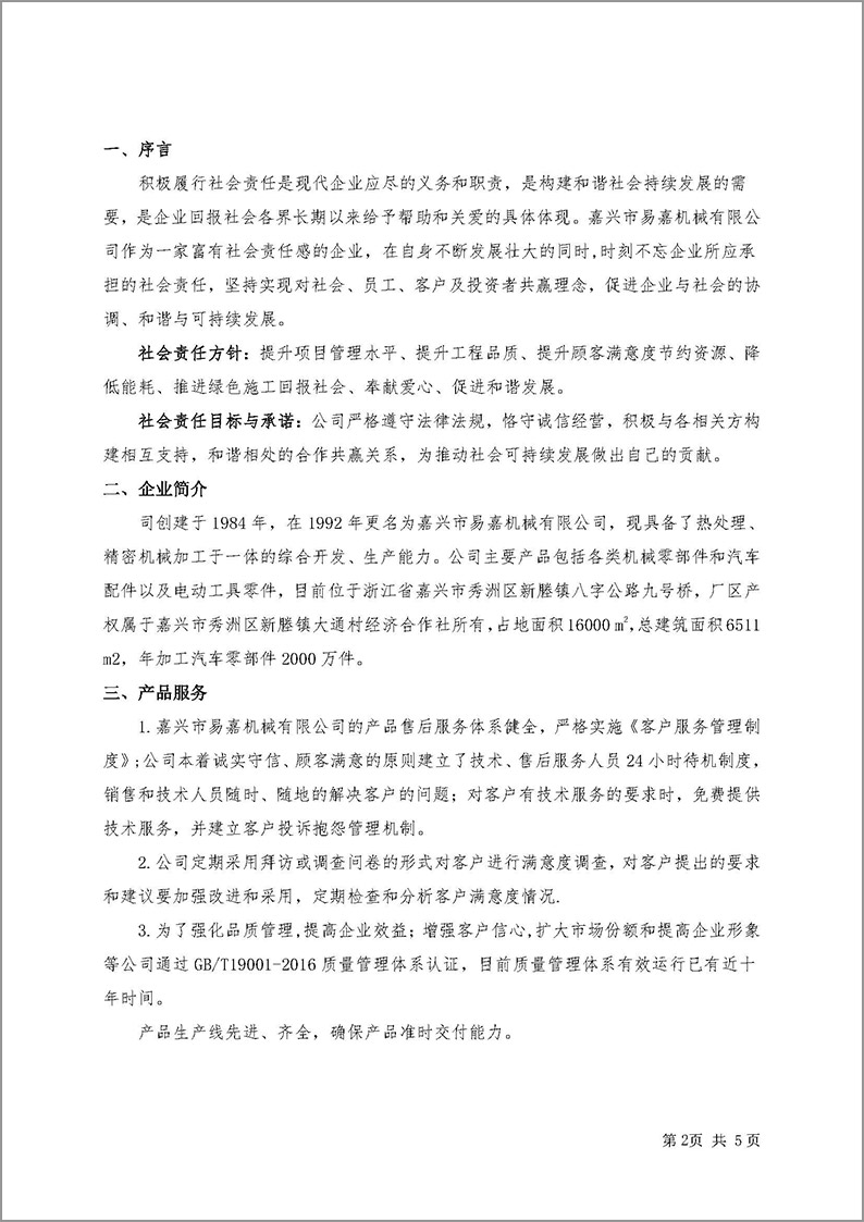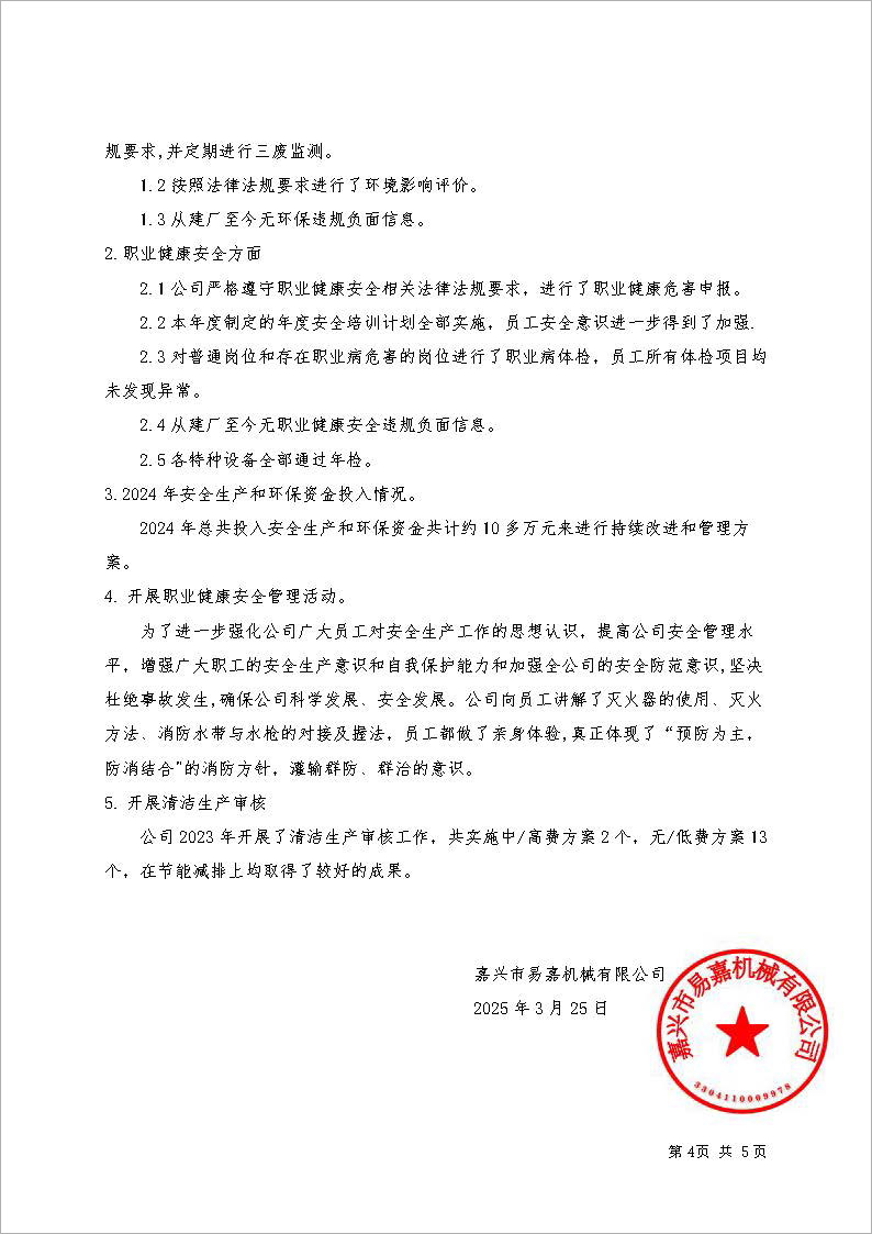 嘉興市易嘉機械有限公司企業社會責任報告(2024年度)