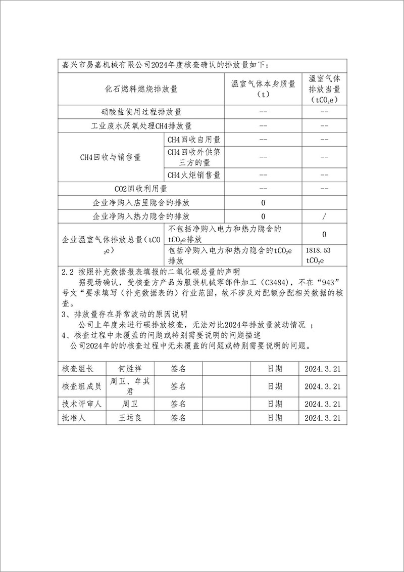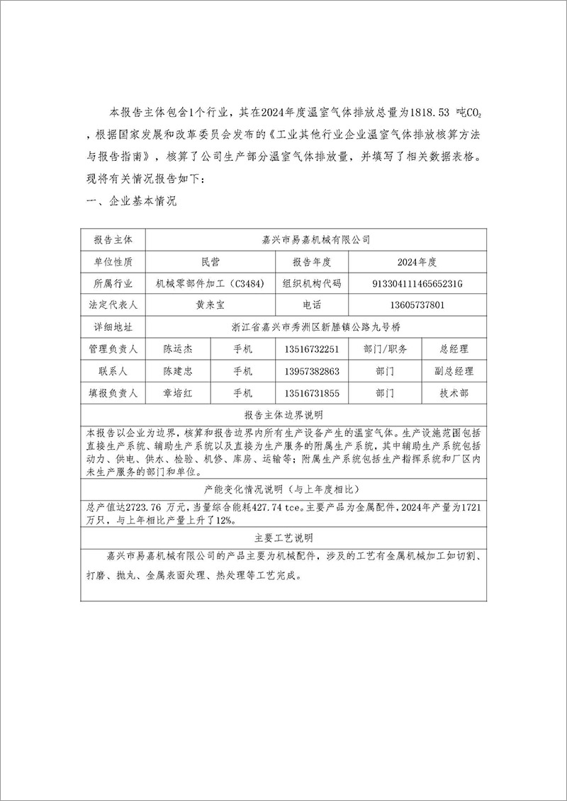 嘉興市易嘉機械有限公司溫室氣體排放報告(2024年度)